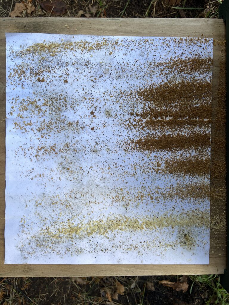 De “gezondheids-voetafdruk” van de winterse bijenkast waaruit we het winterse verloop van het volk bijna letterlijk kunnen aflezen.